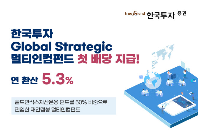 ‘한국투자 Global Strategic 멀티인컴펀드(인컴형)’는 이자수익 및 자본차익을 기반으로 월 단위 배당을 지급하는 구조다. 설정 이후 약 2개월간 USD(외화자산)형 기준 누적수익 약 2.5%를 기록하고 있으며, 6월 27일 기준 첫 배당금으로 연환산 약 5.3%(세전)수준의 수익을 지급했다.