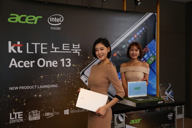 김남웅 에이서코리아 본부장이 7일 서울 중구 더플라자호텔에서 열린 LTE 노트북 신제품 ‘에이서 원 13(Acer One 13)’ 출시 간담회에서 행사를 열며 밝힌 내용이다. 그의 말대로 그 동안 LTE(4세대 이동통신) 연결을 제공하는 노트북은 고사양·고가 일색이었다. KT와 에이서는 이 틈을 겨냥했다.