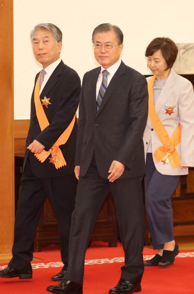 이번에 훈장을 받는 퇴임 대법관은 지난해 8월 1일까지 근무한 김창석·김신 전 대법관과 지난해 11월 1일 임기를 마친 김소영 전 대법관이다. 당초 지난 16일 훈장 수여가 예고됐으나 문 대통령이 연차를 내고 경남 양산 사저를 다녀오면서 일정이 변동됐다.
