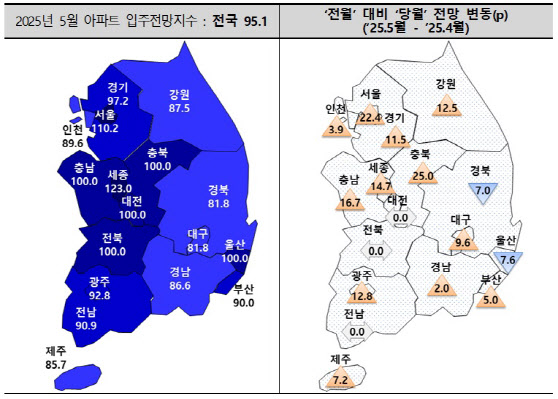 주택산업연구원은 “수도권과 비수도권 모두 입주전망이 뚜렷한 상승을 보이며 시장의 기대감을 반영하고 있다”며 “대출금리 하락과 수도권 중심지역 및 울산, 세종 등 지방 대도시의 집값 상승세가 확산되면서 시장회복에 대한 기대수요를 자극하고, 7월 스트레스 DSR 3단계 시행 전 규제회피성 수요가 맞물리며 입주수요가 집중되는 것으로 분석된다”고 설명했다. 다만 “향후 주요국 간 통상질서의 불확실성과 6월 대선 이후 정국 변화 등 국내외 시장·정치 리스크의 해소 여부가 추가 변수로 작용할 전망”이라고 덧붙였다.