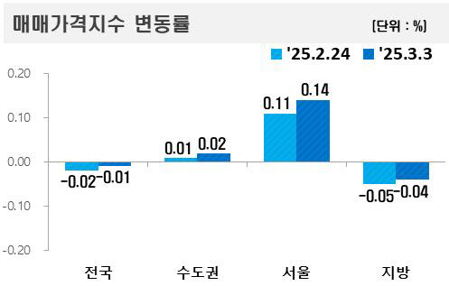 이는 지난주(0.11% 상승)보다 상승 폭이 더 확대된 것으로 토허제가 해제된 강남 3구를 중심으로 매매가가 치솟은 영향으로 풀이된다.