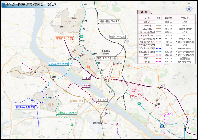 이번 구상안 중 수도권 광역교통망 개선 방안에 기존의 1·2기 신도시와 새로 들어설 3기 신도시를 위한 수도권 서북부 교통대책이 다수 담길 예정이다. 김 장관은 올해 5월 국토부 출입 기자단을 대상으로 가진 기자간담회에서 “수도권 서북부 지역의 광역교통개선을 위해 GTX-A 노선의 2023년 말 차질 없는 개통, 인천 2호선 일산연결, 대곡~소사 전동열차의 일산-파주 연장운행, 서울 3호선의 파주 운정 연장사업을 조기에 추진하고 고양선을 신설하는 방안을 마련하고 있다”고 밝힌 바 있다.