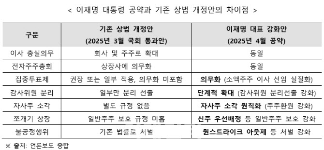 법무법인 율촌에 따르면, 새 정부 경제 관련 1호 법안으로 상법 개정안이 통과될 가능성이 매우 높다. 이전 정부에서 재의요구권 행사로 무산된 안보다 강화된 내용으로 추진될 가능성이 있다.