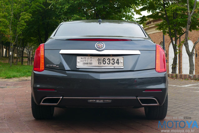 뒷모습은 초대 CTS의 모습을 어느 정도 간직하고 있다. 보조 제동등에 네온을 사용했던 초대 모델의 센스까지 재현하진 않았지만, V자로 접힌 리어 스포일러와 수직 테일램프 등에서 그러한 느낌이 묻어난다. 트렁크 리드의 크롬 장식 오른편에는 음각으로 파 놓은 캐딜락 레터링이 보인다. 필기체로 멋스럽게 새겨진 레터링은 미래지향적 감각의 CTS에서 볼 수 있는 가장 고전적인 요소로 느껴져, 더욱 돋보인다.
