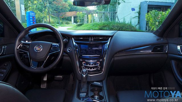 ATS의 것을 유용하고 있는 3스포크 타입의 스티어링 휠은 림이 운전자 쪽으로 약간 나와있는 느낌이다. 그립감은 손에 쏙쏙 들어오는 맛이 있어, 쉐보레 모델들과도 어느 정도 공통 분모를 가지고 있다. 통짜 터치패드로 이루어진 센터페시아는 개폐 동작이 가능하며, 내부에 휴대 기기 등을 보관할 수 있는 공간이 조성되어 있다. 내부에 USB 포트와 AUX단자도 마련되어 있다. USB 포트를 이용하여 충전이나 데이터 전송도 가능하다. 터치 패드는 건드릴 때 마다 윙윙 울리는 햅틱 반응을 보인다. 거기다 글로브박스 개폐는 물론, 비상등까지 터치패드로 처리되어 있다. 센터 콘솔의 컵홀더는 전동 개폐기능까지 갖췄다.