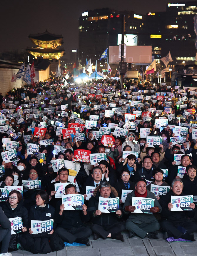 정치권도 탄핵 정국을 가히 내전 상황으로 몰고 있다. 탄핵심판 선고를 앞두고 여야가 단식, 삭발, 집회 등 총력전을 펼치며 여론전을 펼치고 있다. 이에 대학가 시국선언, 1인 시위, 도심 대규모 집회 등 전국적으로 탄핵 갈등은 갈수록 확전 양상이다. 실제로 경찰은 윤 대통령 탄핵심판 선고일에 맞춰 헌재 인근 8개 지역을 특별범죄예방 강화구역으로 설정하는 등 경찰력을 총동원하기로 했다. 정치권 관계자는 “헌재 선고 이후에 ‘제2의 서울서부지방법원 난동’과 같은 비극적 사태가 또다시 벌어질 가능성도 있다”고 말했다.