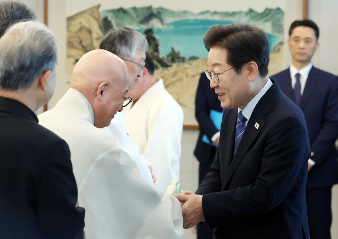 이 대통령은 이날 주요 종교지도자들에게 사회 통합의 역할을 요청했다. 이 대통령은 “취임한 지 한 달 남짓 됐는데 선거과정에서 걱정했던 것처럼 우리 사회가 지나치게 분열·대립적이고 갈등이 많아 격화돼 있어 참 걱정”이라면서 “일단 지금 한 달 동안은 조금씩 봉합돼 가는 모양새가 보이기도 하는데, 정치 상황이 바뀌면 어떻게 될지 모르지 않겠나”라고 말했다. 이어 “우리 종교 지도자 여러분의 역할이 중요한 것 같다”면서 “종교라고 하는 게 기본적으로 사랑과 존중하는 것으로 생각하는데, 종교 지도자 여러분의 역할이 지금보다는 더 많이 요구되는 시대가 아닌가 생각한다”면서 “각별한 관심으로 우리 사회가 서로 존중하고 화합하고 손잡고 함께 가는 그런 상식, 포용적 세상이 될 수 있도록 큰 역할을 기대한다”고 강조했다.