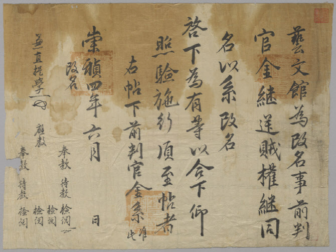 이 중 ‘어제갱진첩’은 1770년 영조가 지은 시와 당시 왕세손이던 정조, 여러 신하들이 화답한 시를 모아 엮은 책으로 임금과 신하의 문학 세계를 엿볼 수 있는 귀중한 자료다. 조선시대에는 국왕의 허락을 받아야 개명이 가능했음을 보여주는 희귀 고문서 ‘개명첩’도 기증품에 포함됐다.