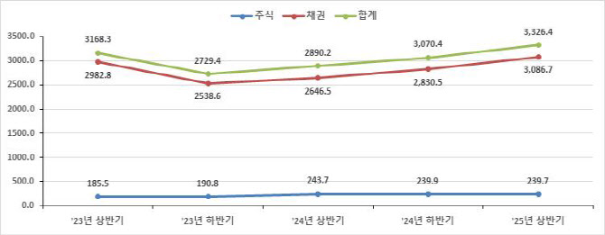 올해 상반기 주식과 채권을 더한 전체 증권결제대금은 3326조 4000억원으로 직전 반기 대비 8.3% 증가했고 전년 동기와 비교해도 15.1% 늘었다.