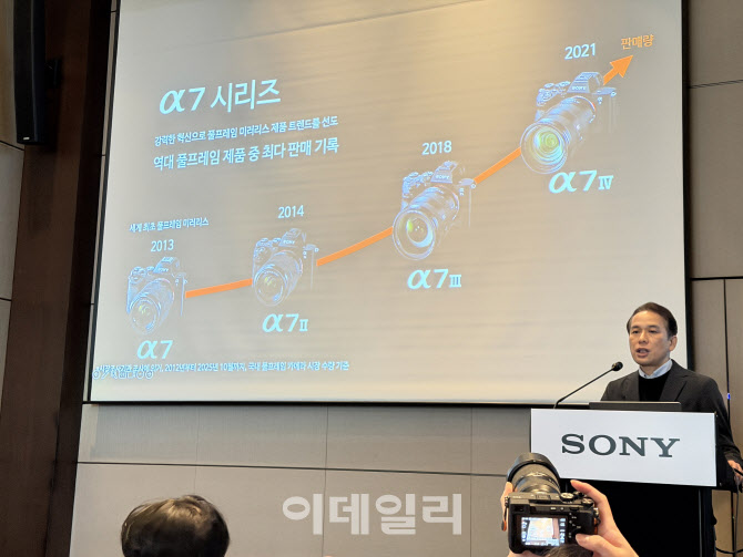키타지마 유키히로 소니코리아 대표는 “알파 7 시리즈는 역대 풀프레임 카메라 중 가장 높은 판매량을 기록했다”며 “알파 7 V도 풀프레임 시장에서 절대적인 1위를 차지할 것이라고 확신한다”고 했다. 앞서 소니는 2013년 세계 최초 풀프레임 미러리스 카메라 ‘알파7’을 출시하며 DSLR 위주의 카메라 시장의 판도를 바꿨다. 이후 지난해까지 12년 연속 풀프레임 미러리스 시장에서 1위 자리를 수성해왔다.