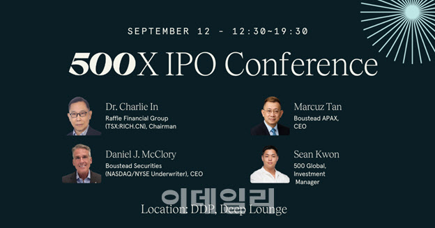 [이데일리 마켓in 박소영 기자] 글로벌 벤처캐피털(VC)인 500 글로벌이 서울시·서울경제진흥원(SBA)과 함께 오는 11일부터 12일까지 이틀간 동대문디자인플라자(DDP)에서 글로벌 스타트업·투자자를 위한 특별 세션과 기업공개(IPO) 컨퍼런스 코리아 에디션 2025를 개최한다고 8일 밝혔다.