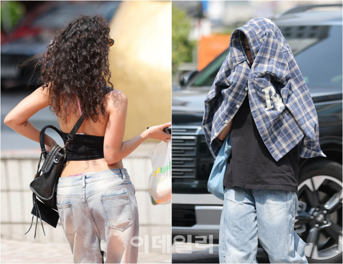 | | 기록적인 폭염이 계속되고 있는 8일 오후 서울 영등포구 여의도에서 무더위에 시민들이 상반된 옷차림으로 거리를 지나고 있다. (좌)한 외국인은 시원한 옷차림으로, (우)한 시민은 셔츠로 얼굴을 가친채 뜨거운 태양을 막고 있다. 한편, 이날 오후 2시께 서울 기온이 37.1℃까지 치솟았다. 근대적인 기상관측을 시작한 이래 7월 상순 기온으론 역대 최고치 기록이다.(사진=이데일리 노진환 기자) |