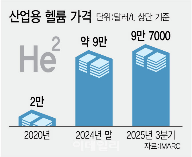 다양한 산업에서 헬륨 수요가 늘어나자 헬륨 가격 역시 계속해서 오르는 추세다. 여기에 더해 최근 환율 급등에 원자재가격 상승 등이 복합적으로 작용했다. 시장조사기관 IMARC 따르면 산업용 헬륨 가격은 지난해 말 기준 t당 약 9만달러에서 올해 3분기 t당 9만5000~9만7000달러 수준으로 올랐다. 2020년 t당 1만5000달러~2만달러였던 과거와 비교해보면 5년 사이에 헬륨가스 가격은 3~5배 뛴 셈이다.
