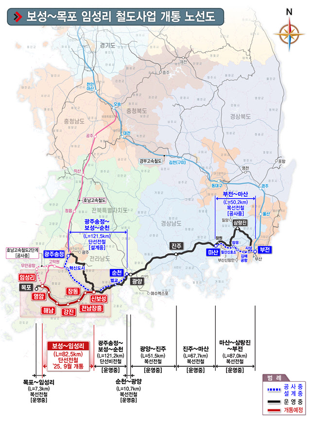 윤진환 국토교통부 철도국장은 “목포보성선 개통은 지역 상생과 국토 균형성장의 이정표”라며 “부전~마산 복선전철, 광주송정~순천 전철화사업도 조속히 마무리해 목포부터 부산까지 2시간대 이동을 실현하겠다”고 말했다.