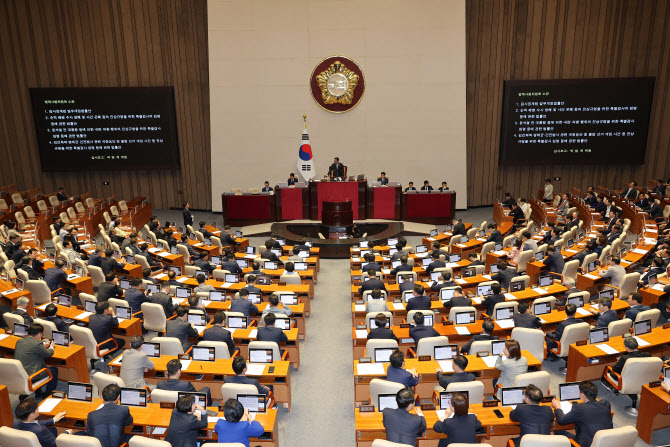 국회는 5일 오후 2시께 제426회 국회(임시회) 제1차 본회의에서 3대 특검법과 검사징계법 일부개정 법률안은 모두 재석 198명 중 찬성 194명, 반대 3명, 기권 1명으로 본회의를 통과했다. 이에 국민의힘 의원들은 도중에 의석을 박차고 나가기도 했다.