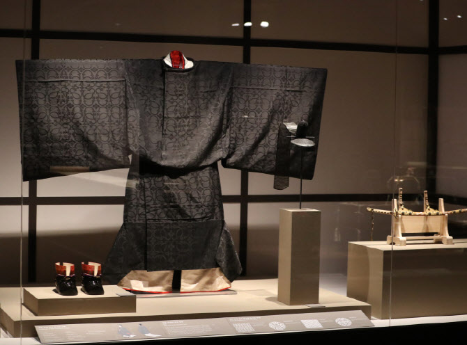 궁정에서 남성이 입는 ‘소쿠타이’와 여성 예복인 ‘주니히토에’는 여러 겹을 겹쳐 입는 일본 전통복식을 보여준다. 또 꽃과 나비, 마름모, 등나무 덩굴 등을 활용한 일본의 전통 문양도 엿볼 수 있다.