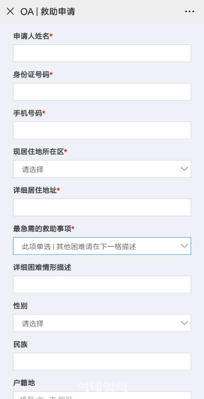 신청을 원하는 사람은 우한시 민정국 홈페이지에 공지된 QR코드를 스마트폰에 입력해 이름, 신분증 번호, 휴대폰 번호, 현재 거주지 등 인적 사항을 적으면 된다. 또한 어려운 상황에 처한 이유가 무엇인지 △거주 문제 △진찰 문제 △생활비 문제 △구직문제 또는 봉사지원 등 4가지 중 선택하면 된다.