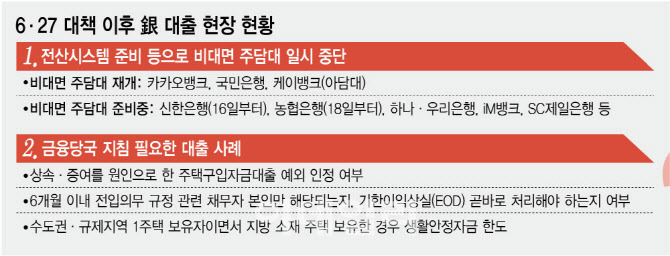 비대면 접수를 다시 시작했지만 은행도 소비자도 ‘규제 고차방정식’을 풀 공식은 아직 찾지 못했다. 다양한 경우의 수까지 고려해야 하는 데다 은행이 자의적 해석으로 대출을 내주기 어렵다. 이런 상황에 애매한 사례들은 일단 대출이 불가하다고 안내한 후 당국의 응답을 기다리고 있다.