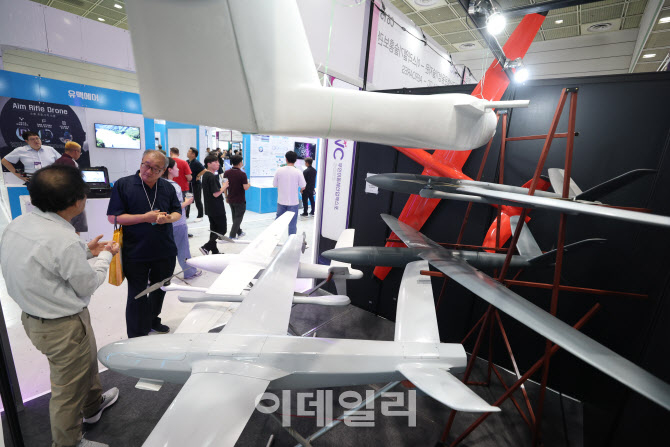 [이데일리 이영훈 기자] 9일 서울 강남구 코엑스에서 열린 2025 무인이동체산업엑스포에서 관람객들이 참가 업체 부스의 주요 제품들을 살펴보고 있다.