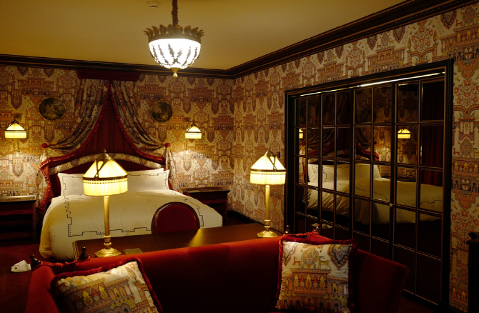 부티크 호텔 인테리어의 대가인 자크 가르시아(Jacques Garcia)가 설계한 레스케이프 호텔의 객실은 19세기 귀족 사회의 영감을 받은 감각적인 내부 인테리어가 인상적이다.