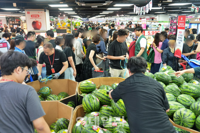 | | 매장 내 사람들이 1만 4990원의 통큰 수박을 사기 위해 몰려 있다. (사진=롯데마트) |