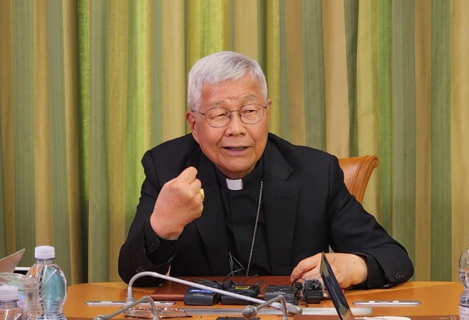 끝으로 유 추기경은 “대통령님 축하드립니다. 힘내십시오. 기도합니다”며 재차 축하 인사를 건넸다.