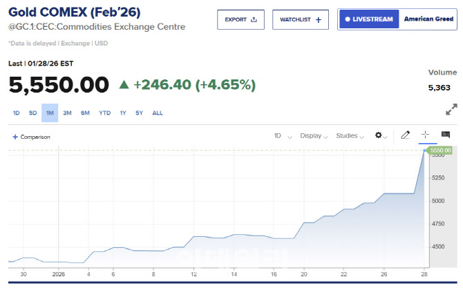 은 가격도 급등세다. 국제 은값은 29일 오전 11시 기준 온스당 117.76달러로 전날 종가(116.69달러)보다 0.9% 올랐다. 은은 올해 들어 65% 가까이 급등했다.