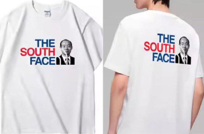 해당 가방은 싱가포르에 있는 회사가 제작·판매하는 것으로 확인된 가운데 티셔츠와 똑같은 문양인 노스페이스를 패러디한 사우스페이스 로고 옆에 전 전 대통령 얼굴이 인쇄돼 있었다.