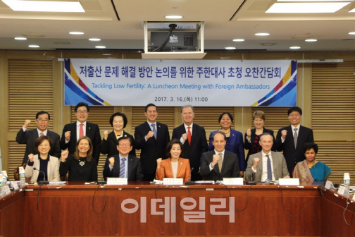 16일 오전 11시 국회 의원회관 제2 세미나실. 국회 저출산고령화대책특별위원회(위원장 나경원) 주최로 ‘저출산 문제 해결방안 논의를 위한 주한대사 초청 간담회’가 열렸다. 정치·경제·사회·문화적 환경의 차이에도 저출산 고령화 문제와 관련해 세계 각국이 처한 상황과 이를 해결하기 위한 정책경험을 공유하기 위한 것.