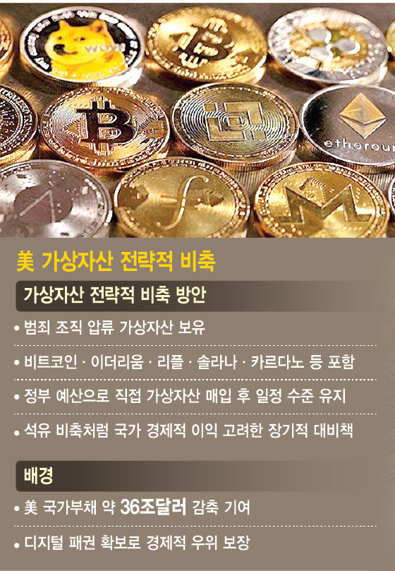 황석진 동국대학교 국제정보보호대학원 교수는 “미국 정부가 보유한 부채를 달러로 갚는 것보다는 가격이 오를 가능성이 높은 가상자산을 전략 자산으로 비축하는 것이 이득이라는 판단이 깔려있는 것으로 보인다”며 “이번에 언급된 이더리움, 리플, 솔라나, 카르다노는 주식 시장으로 따지면 일종의 우량주”라고 설명했다.