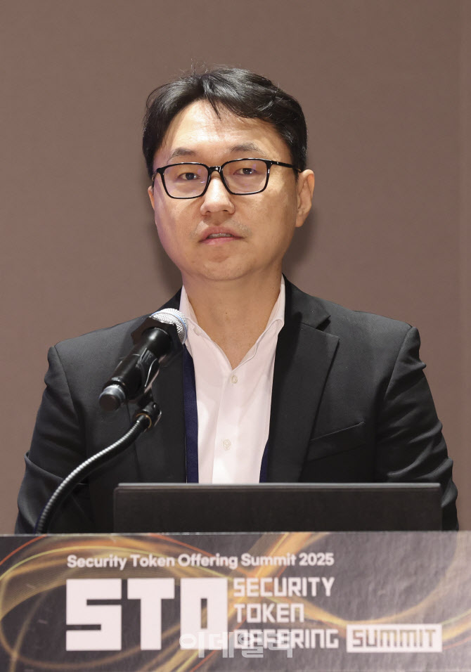 | | 황인무 ADDX 공동설립자&CFO가 25일 서울 여의도 한국거래소에서 열린 STO 써밋 2025(SECURITY TOKEN OFFERING SUMMIT 2025)에서 ‘부와 기술, 금융의 재구성’ 주제로 발표를 하고 있다.[사진=이영훈 기자] |