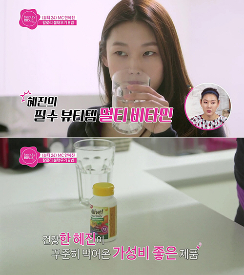 이날 방송에서 한혜진은 평소 바쁜 모델 활동에 필수인 다이어트 뷰티 비법에 대해 전하면서 ‘얼라이브 원스데일리’를 섭취하고 있다고 말했다.