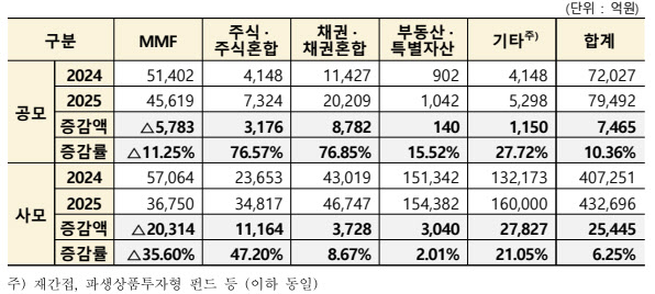 다만 MMF(머니마켓펀드)에선 감소세가 확인됐다. 공모 MMF 이익배당금은 4조 5619억원으로 11.25% 줄었고, 사모 MMF는 3조 6750억원으로 35.60% 감소했다.