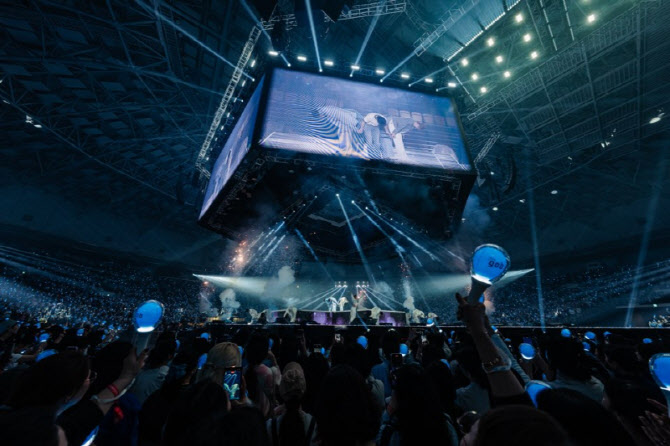 이러한 콘셉트는 오프닝 장면에서부터 선명하게 드러났다. 무대 상공에서 거대한 박스 형태의 구조물이 웅장하게 내려오며 포문을 열었고, 박스가 열리듯 장치가 개폐되자 멤버들이 모습을 드러내며 관객들의 시선을 단숨에 사로잡았다. 여기에 중앙 제어 방식의 응원봉이 음악과 조명에 맞춰 일사불란하게 빛나며 무대와 객석의 일체감을 극대화했다.