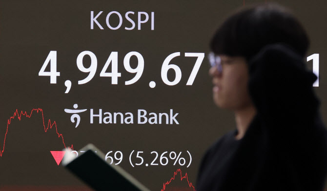 이날 지수는 전장 대비 1.95% 내린 5122.62에 출발해 낙폭을 확대하면서 장중 한때 전장 대비 5.57% 내린 4933.58선까지 내리기도 했다.