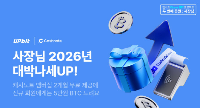 두나무는 새해를 맞아 소상공인의 사업 운영을 지원하기 위한 ‘2026 사장님 성공지원 이벤트’를 진행한다고 13일 밝혔다. 이번 이벤트는 소상공인 경영관리 서비스 ‘캐시노트’와 함께 마련했으며, 지난해 말 시작한 ‘업비트 Cheer Up!’ 프로젝트의 두 번째 캠페인이다.