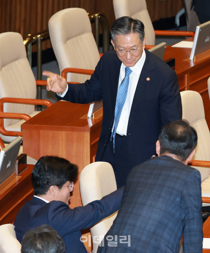 [이데일리 노진환 기자] 정성호 법무부 장관이 23일 오후 서울 여의도 국회에서 열린 제427회 국회(임시회) 제2차 본회의에 참석, 의원들과 인사를 나누고 있다.