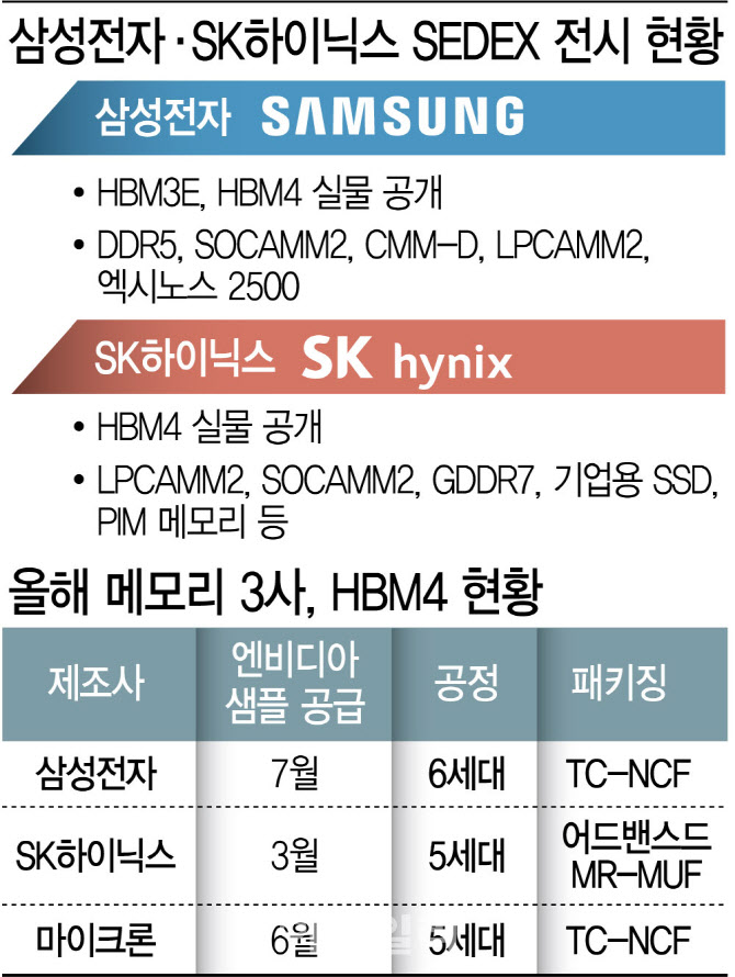 가장 주목 받는 회사는 SK하이닉스다. 5세대 HBM3E에 이어 6세대 HBM4까지 시장을 장악하겠다는 복안이기 때문이다. SK하이닉스는 지난 5월 대만에서 열린 아시아 최대 규모 정보기술(IT) 전시회 ‘컴퓨텍스 2025’에서 HBM4 샘플을 전시했는데, 당시 젠슨 황 엔비디아 최고경영자(CEO)는 “HBM4를 잘 지원해달라”고 말해 주목 받았다. 업계에서는 무리없이 SK하이닉스가 엔비디아에 HBM4를 공급할 것으로 보고 있다. SK하이닉스는 지난 3월 엔비디아에 가장 먼저 HBM4 샘플을 보냈고, 양산 준비를 마치고 막판 물량 협상을 진행 중인 것으로 알려졌다.