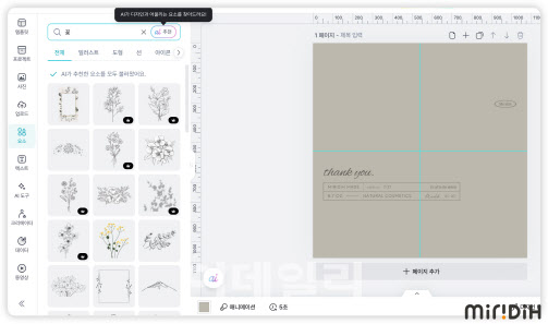 미리클넷의 핵심 기능은 △다중 키워드 기반의 ‘템플릿 검색’ △▲디자인 맥락 기반 ‘스타일 추천’이다. 템플릿 검색은 ‘청첩장, 초록색, 캘리그라피’처럼 복합 키워드 입력 시 가장 유사한 레이아웃과 구성을 갖춘 템플릿을 실시간으로 추천하며, 연내 목차·차트·SWOT 분석 등 콘텐츠 구성 요소 검색 기능도 확장할 계획이다. 스타일 추천은 별도의 검색 없이도 수천만 건의 디자인 자산 중 적합한 일러스트·아이콘·패턴 등을 자동 선별해 제시한다.