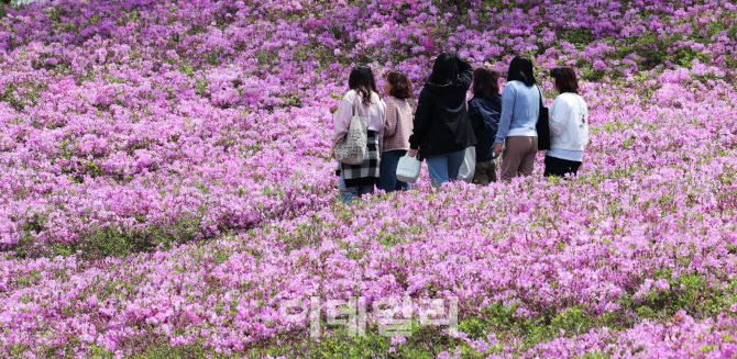 [이데일리 김태형 기자] '2025 불암산 철쭉제'가 열리고 있는 23일 서울 노원구 불암산 힐링타운에서 시민들이 산책을 하고 있다.