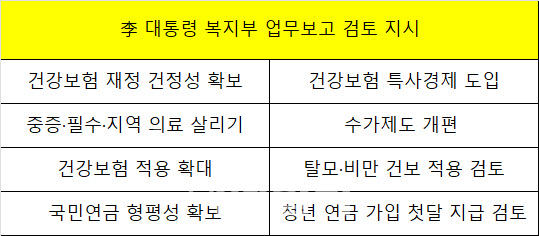 이 대통령은 “건보료만 계속 올릴 수 없지 않느냐”며 건보재정 건전성 확보 방안을 주문했다. 이를 통해 중증필수지역의료가 문 닫지 않게 적정한 보상이 이뤄져야 한다는 것이다. 정은경 보건복지부 장관은 “과 보상되고 있는 검체, 영상검사 수가는 조금 조정하고 그걸 필수중증의료 수가 인상 재원으로 사용하는 등의 수가조정 계획을 내년에 계획하고 있다”고 설명했다.