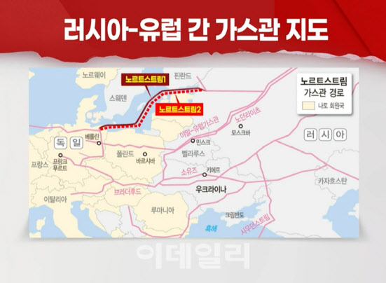 러시아와 독일을 잇는 직통 가스관이 공사를 다 마치고도 가동을 위한 승인이 보류됐습니다. 서방국가의 러시아 제재가 시작된건데요. 이에 따라 미국 셰일가스의 유럽 수출이 확대되면서 LNG(액화천연가스)선 신규 발주 모멘텀이 강화될 것이라는 기대감이 커졌습니다. 성주원 기자가 보도합니다.