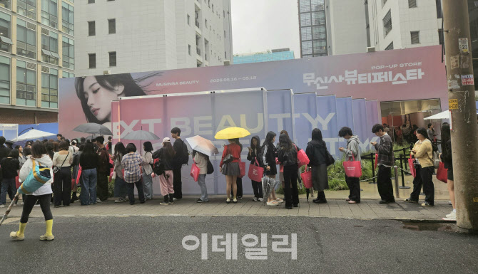 | | 서울 성수동 무신사 스퀘어 성수4에서 열린 ‘무신사 뷰티 페스타’ 입구에 긴 대기줄이 이어져 있다. (사진=김정유 기자) |