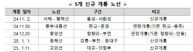 13일 한국철도공사(코레일)에 따르면 작년 11월부터 올해 1월까지 개통한 5개 노선에서 1월 한 달 이용객이 49만명으로 조사됐다.