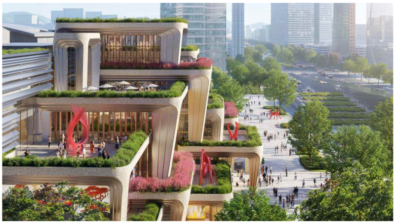 지하 4~7층 사이에는 5개의 철도 노선 및 환승 공간이 들어서고 지하 2~3층에는 공공 상업공간을 조성한다. 기존 도로는 지하 1층으로 지하화하고, 지상에 녹지 광장을 설립한다.