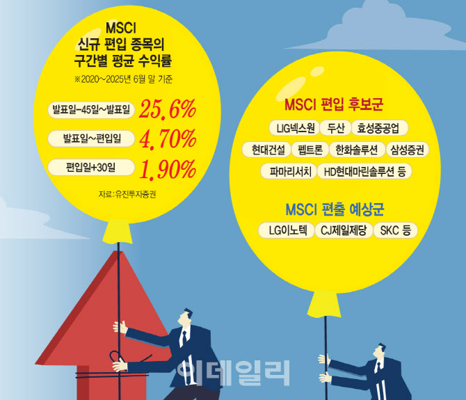 MSCI 편입 종목은 발표일 약 45일 전부터 주가가 우상향하고, 리밸런싱 직후 차익 실현 물량에 단기 조정이 자주 반복된다. 이에 편입 기대감이 높은 종목의 경우 단기 전략 접근과 중장기 기업가치 분석을 병행하는 유연한 투자가 요구된다.