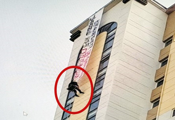 현장에 출동한 소방당국은 외벽에 현수막을 걸고 고공농성을 벌이고 있는 A씨를 발견했다.