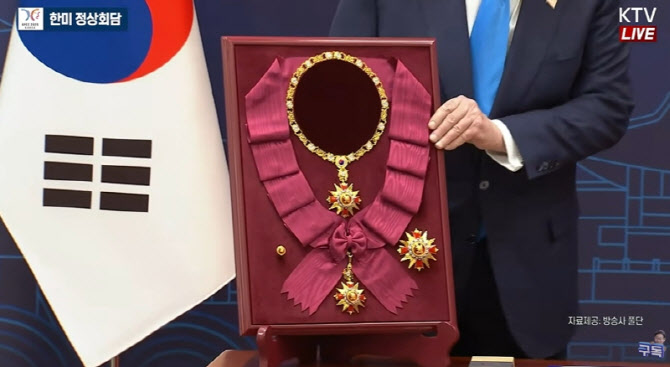 [이데일리 권혜미 기자] 이재명 대통령이 아시아태평양경제협력체(APEC) 정상회의 참석을 위해 국빈 방한한 도널드 트럼프 미국 대통령에게 대한민국 최고 훈장인 무궁화대훈장을 수여했다.