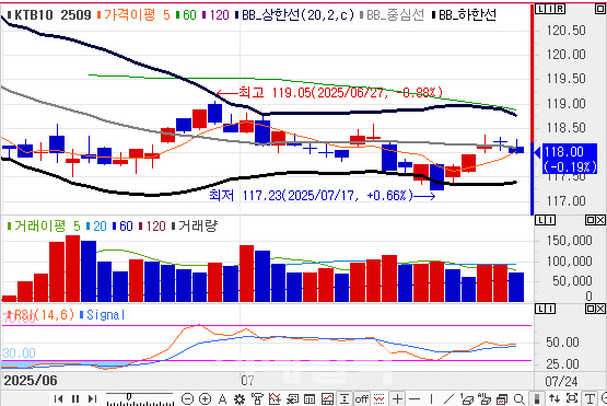 이에 시장에선 국고채 10년물 가격이 저점을 다졌다는 견해도 나온다. 또 다른 운용역은 “외국인이 10년 국채선물을 던져도 로컬이 받아주고 있는 상황”이라면서 “국내 금리가 추가로 더 오를 것이란 우려도 옅어진 분위기에서 결국 연내 한 번 이상은 기준금리가 내릴 것이란 생각들을 모두 하는 만큼 상승 반전을 전망하고 있다”고 강조했다.