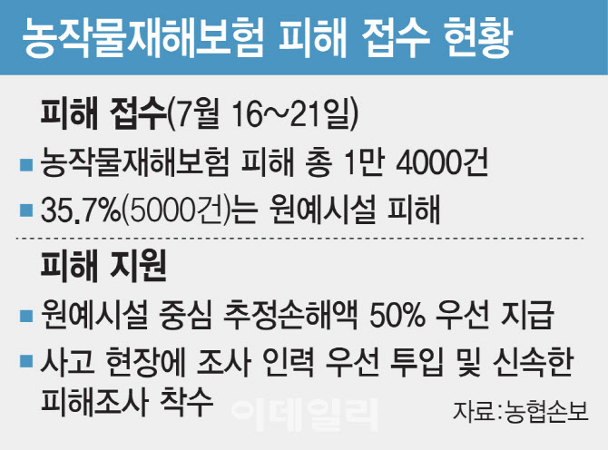 원예시설 36%…손해액 50% 우선 지급
